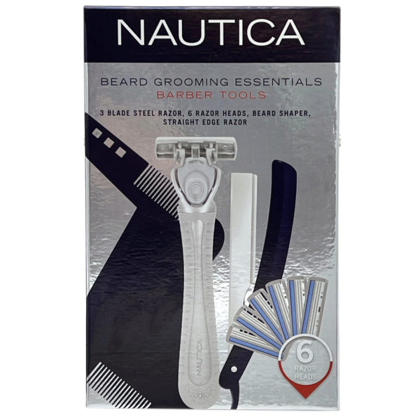 Nautica 4 Piece Beard Grooming Essentials Kit With Razor 5 Razor Blades Beard Shaper Straight Edge Razor